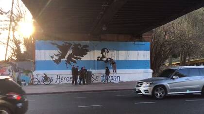 Los hombres que pintaron una representación de las islas Malvinas sobre el mural de la artista plástica Sofía Wiñazki debajo del puente de Dorrego y Alcorta, integran un grupo que reivindica a los caídos en la guerra de 1982. Aseguran que intervinieron porque, debajo de los árboles que dibujó la joven con permiso del gobierno de la Ciudad, quedó tapada una obra con la que ellos habían colaborado hace más de un año.