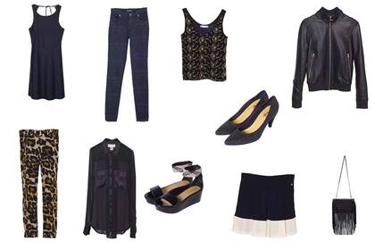 Vestido slim (Tucci, $790), jeans con trama (Volcom, $960), musculosa bordada (Uma, $1198), stilettos con taco corto (Sofi Martiré, $1190), chaqueta bomber (Divina Bolivia, $6500), pantalón animal print (Zhoue, $540), camisa transparente (Paula Cahen D´Anvers, $970), sandalias con plataforma (Hush Puppies, $1200), falda bicolor (Zhoue, $414), bandolera con maxiflecos (Prüne, $1290).