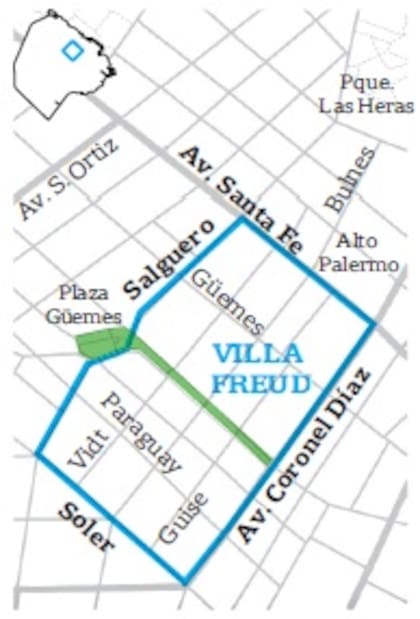 En algún momento conocida como plaza Freud, hoy la plaza Güemes es rodeada por una rotonda ovalada. Hay un mástil con una bandera argentina, juegos para niños, una decena de árboles. No hay rastros de Freud. En 2006, dos legisladores porteños intentaron dejar una huella indeleble: presentaron un proyecto de ley para modificar el nombre de dos cuadras de la calle Medrano, aisladas del tramo principal, y llamarlas Freud. La idea no prosperó.