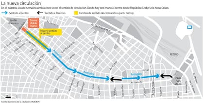 Así, la medida contribuirá a completar el panorama atípico de Arenales, una calle que ahora, en un recorrido de 33 cuadras, cambiará cinco veces de sentido de circulación: desde el Jardín Botánico hasta Callao corre hacia el centro (con una cuadra en la que será doble mano entre República Árabe Siria y Scalabrini Ortiz), en tanto que el sentido va en dirección contraria entre Callao y Montevideo, donde vuelve a bajar hacia Plaza San Martín, pero sólo hasta la calle Suipacha. Entre esta última y Maipú, finalmente, la calle vuelve a dirigirse hacia el norte de la ciudad. A eso hay que sumarle, además, que el tramo entre República Árabe Siria y Scalabrini Ortiz será doble mano, y que entre Montevideo y Cerrito el tráfico automotor comparte el espacio con una bicisenda.
