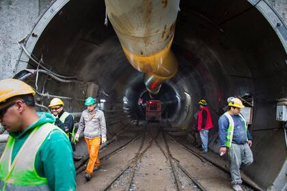 "La tunelera no para: tenemos turnos de día y de noche y está funcionando permanentemente", cuenta el radio operador Héctor Parada, a pasos de la boca del túnel. Su rol consiste en coordinar el vaciado de los vagones con tierra que llegan desde el interior y organizar el envío de las nuevas dovelas, las piezas curvas de cemento que se colocan para recubrir el ducto de 5,3 m de diámetro.