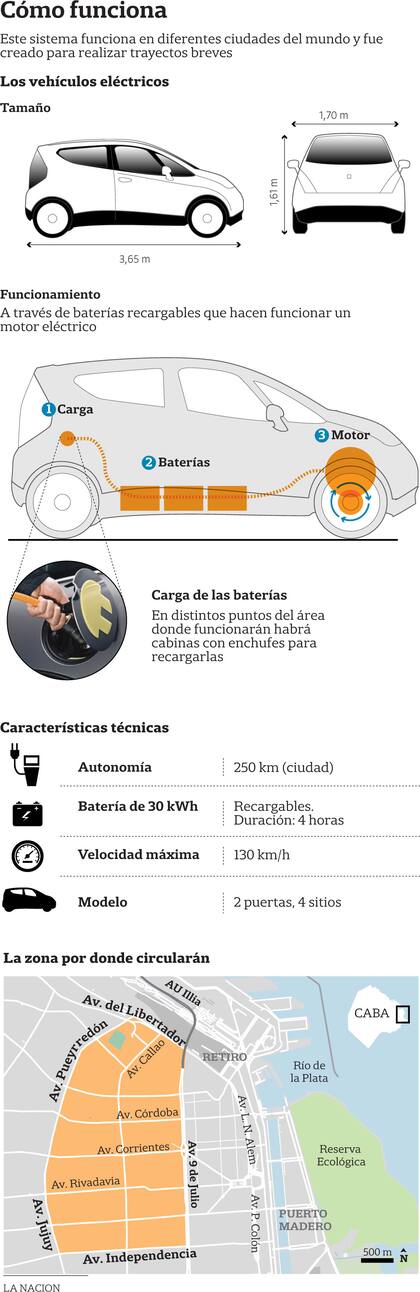 Según este proyecto, los autos eléctricos se podrían retirar con una tarjeta o bien con un código de autorización, y el usuario pagará por kilómetro recorrido. "Son sistemas sofisticados, de forma tal que la persona que alquila uno de estos vehículos hasta podrá reservar un lugar para estacionar en lugares que serán delimitados exclusivamente para estos autos", comentó el funcionario porteño.