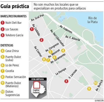 Los propios celíacos señalan que la oferta gastronómica porteña para ellos es muy pobre, y por eso mismo se ven obligados a llevar viandas a sus trabajos. Si bien la ciudad ofrece desde cursos de cocina especializada, helados (en Volta, Persicco y Freddo) y hasta una amplia variedad de tiendas con productos dietéticos (entre ellos, cerveza), los lugares aptos para celíacos no abundan ni mucho menos. Las cafeterías "libres de gluten" escasean (entre las principales se destacan Comer en Compañía en el microcentro, Teadoro García en Colegiales, y NutriDeli, en Núñez), y la vida de quien padece esta enfermedad tiene pocas opciones.