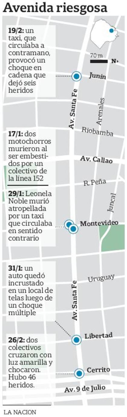 En la misma esquina, el 29 de enero, un taxista que circulaba a contramano por Santa Fe atropelló a varias personas en Recoleta, una de las cuales –la joven Leonela Noble– murió.