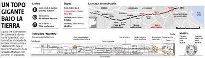La tuneladora bautizada Argentina, que hará el soterramiento del ferrocarril Sarmiento, ya comenzó a ensamblarse en una imponente trinchera de 25 metros de profundidad a metros de la estación Haedo. El 15 de septiembre próximo comenzará a cavar el túnel de 17 kilómetros hasta el barrio porteño de Caballito, donde llegaría en diciembre del año próximo, según adelantaron los profesionales a cargo de la obra. Recién dentro de 44 meses, en 2015, el soterramiento de ese tramo reemplazará a la actual traza de superficie.