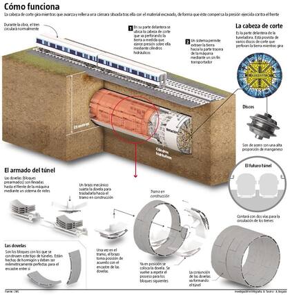 Cenciarini es un italiano que trabajó en la construcción de túneles y vías en otras ciudades del mundo. "Esta máquina tiene la capacidad para construir túneles de aproximadamente 11,50 metros de diámetro, equivalente en altura a un edificio de cuatro pisos, lo que permitirá la circulación de formaciones ferroviarias de doble piso y nueve coches cada una exclusivamente para servicio de pasajeros. Los trenes podrán ir a 120 kilómetros por hora porque las vías serán nuevas", aseguró Cenciarini.