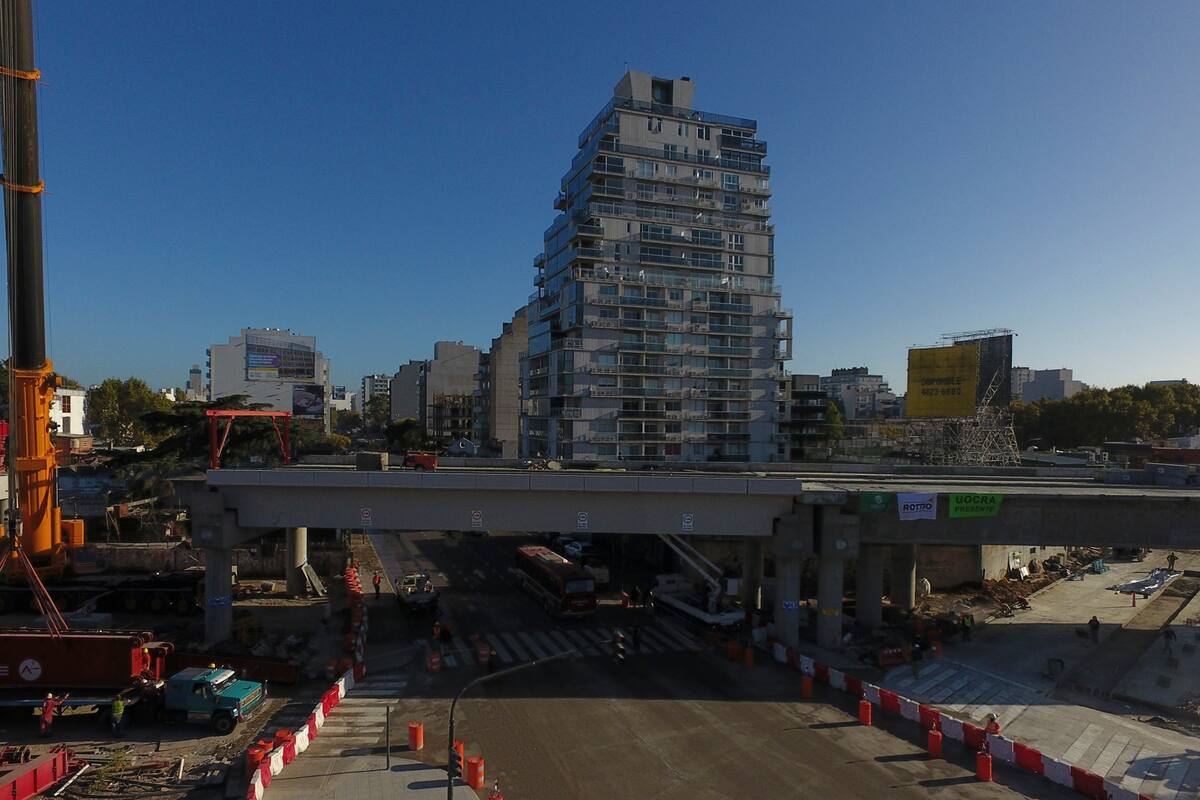 En lo alto se observa la estructura del viaducto en ejecución, que se tenderá entre las estaciones Palermo y La Paternal. Según estimaciones oficiales, la eliminación de pasos a nivel permitirá que los usuarios de colectivos y los automovilistas ahorren entre 15 y 20 minutos de viaje.