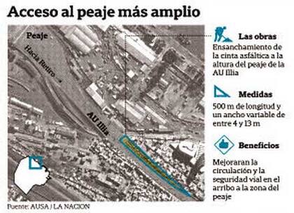 "El sector posee una longitud de 500 metros y un ancho variable de entre 4 y 13 metros. AUSA tiene proyectado incorporarlo a la calzada de la autopista para facilitar la aproximación al peaje", informaron en la concesionaria de la autovía.