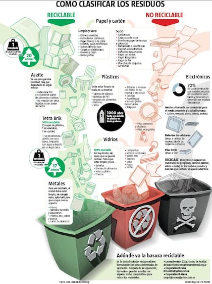 Alejandra Fernández vive en Devoto y también hace un esfuerzo para poder promover la conciencia ambiental. "Para no complicarme la vida, hago dos grandes separaciones: en secos y húmedos. Empecé hace tres años y ya no podría dejar de hacerlo", contó a LA NACION. Ella buscó información para poder realizar el reciclaje de un modo eficiente.