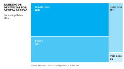 Según datos del Ministerio Público Fiscal, durante 2015 se recibieron 610 denuncias por oferta de sexo en la vía pública en Constitución, el doble que en 2014.
