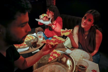 "Ya había probado, conocía el lugar, pero cuando supimos que había descuentos importantes aprovechamos y nos llevamos dos pizzas enteras", cuenta Flavia Flores mientras espera una grande de Obama (con pepperoni y muzzarella) y otra Chick Norris (con pollo y barbacoa). Junto a ella su marido, Sergio Orueta, y su hija, Victoria, se muestran ansiosos hasta que llega su orden.