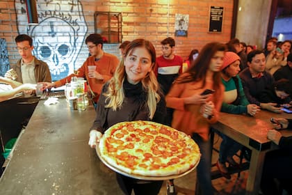Sesenta metros de cola para hacer el pedido. Gente sentada alrededor de una mesa, codo con codo, con sus tickets en la mano y la mirada concentrada en el llamador electrónico hasta ver sus luces encendidas y abalanzarse sobre la porción de pepperoni o Chick Norris, las dos opciones más pedidas en Hell’s Pizza, donde la pizza neoyorquina se abre paso en pleno Palermo.