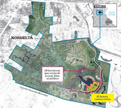 Es el área dentro de Nordelta que se destinará a la construcción de un centro cívico con oficinas, comercios y servicios públicos que serán de libre acceso para el público