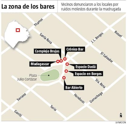 Los vecinos del pasaje Santa Rosa, que viven a metros de la plaza Julio Cortázar, desde hace tiempo están desvelados. Dormir es el sueño que tienen cada noche, pero que jamás pueden concretar. La música a altas horas de la madrugada y el cuchicheo incesante de los clientes de los distintos bares de la zona convirtieron su vida en un calvario.