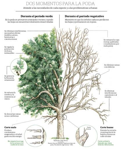 "En general, la poda no está bien hecha", alertó el ingeniero agrónomo Carlos Anaya, miembro de la Sociedad Internacional de Arboricultura. Precisó que no debería podarse más de un 25% del volumen total de la copa, porcentaje que puede variar un poco en función a distintos aspectos. "Esto definitivamente no se cumple", advirtió.