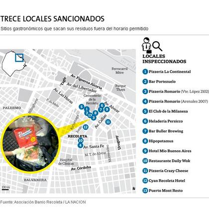 En la misma cuadra, Antonio Klain, encargado de la pizzería La Continental -que también fue sancionada-, se queja de lo mismo. "Nos labraron un acta porque revisaron la basura del contenedor que está en frente y encontraron tickets de nuestro local de las 23.15. Es incomprobable que hayamos sacado la basura a esa hora. Ahora tengo diez bolsas de basura dentro de la cocina. No se puede trabajar así", dijo.
