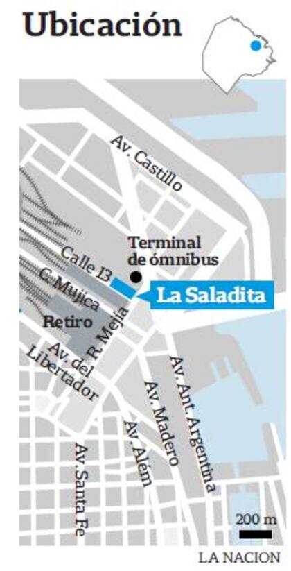 Esa "Saladita" fue desalojada el 9 de mayo pasado y clausurada por el Ministerio Público Fiscal de la ciudad. Ahora no hay puestos, pero sí muros que están siendo levantados por los ocupantes del lugar, para dividirlo en habitaciones.