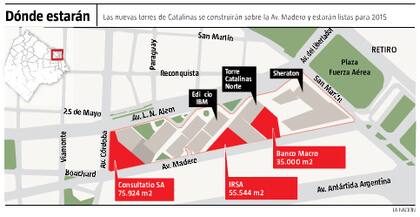Lejos de esa oferta relacionada con servicios, los vidriados rascacielos -que tendrán, según los permisos de obra otorgados por el gobierno porteño, entre 125 y 135 metros de alto- serán destinados a oficinas, como los ya habilitados, entre los que se destaca la torre de Consultatio, en el extremo sur de Catalinas, y el hotel Sheraton, en el extremo norte.