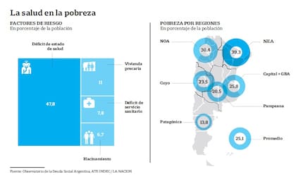 Según cifras del Observatorio de la Deuda Social Argentina de la UCA el 47,8% de la población presenta un déficit de estado de salud, un 7,8% un déficit de servicio sanitario; un 11% tiene viviendas precarias y el 6,7% vive en situación de hacinamiento. Si a esto le sumamos que el NEA y el NOA son las zonas con mayores índices de pobreza (39,3% y 30,4% respectivamente según el ATE-Indec), las zonas rurales del norte del país son las más afectadas por aspectos que inciden directamente en el estado de salud de las comunidades.