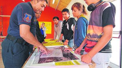La cartulina desplegada sobre la mesa. Todos miran con atención. Señalan. Opinan. Preguntan. Es el momento en el que los alumnos de la Escuela 4-195 El Molino, de San Rafael, Mendoza, le explican a los bomberos cómo armaron el mapa del barrio, en base al cual están construyendo un plan de autoevacuación en caso de un aluvión. Los alumnos de esta escuela secundaria - junto con los del Instituto de Educación Superior (IES) N° 9-011 Del Atuel - están llevando adelante el proyecto Construyendo ciudadanía a través de la prevención de riesgos ambientales en nuestra comunidad. Ante la falta de motivación detectada por los docentes de ambos cursos, los docentes se animaron a hacer algo distinto, salir a la calle, y proponerle a los alumnos que con sus saberes, pudieran ayudar al barrio. "A comienzos de este año, con el curso de 3ero 2do tuve algunos problemas con la estrategia para dar clases. Por eso se me ocurrió empezar a trabajar en un proyecto que tuviera que ver con su realidad social para que eso los motivara. El principal logro fue el cambio en los estudiantes y su compromiso. Hoy se sienten responsables de brindarle a su comunidad una ayuda", explica Laura Eztala, docente de Salud Integral y Adolescencia en la Escuela El Molino 4-195. Los barrios El Molino y Pobre Diablo se encuentran sobre el cauce del Río Diamante, que fue desviado con la construcción de diferentes represas. En épocas de fuertes lluvias se generan aluviones que ponen en riesgo a las 900 familias que viven en la zona, ya que el agua tiende a volver a su cauce original.