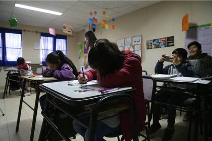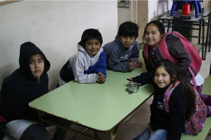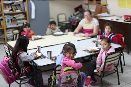 Al mediodía todos los alumnos almuerzan en la escuela. El menú de hoy es pollo con ensalada y flan de postre. Cada uno ocupa su lugar en las mesas rectangulares y esperan su turno. "Necesidades de hambre no hay. No tenemos chicos con desnutrición infantil, eso es vital. Porque eso quiere decir que no tienen problemas de aprendizaje", expresa Domínguez.