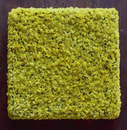 Traverso trasladó a la galería de Retiro su inventario de mazorcas de la Quebrada de Humahuaca. “Me fueron regalando distintos tipos de maíces. Rojos, amarillos, morados. Y quise traer mi paisaje cotidiano. Más que vecinos, tengo sembradíos y corrales enfrente de mi casa. Es lo que veo cuando salgo, las chalas y los maizales aplastados contra el corral. Se forma una gran pared de maíz. Parte de ese recorrido por el espacio está puesta en diálogo, mi contemplación cotidiana es lo primero que se ve cuando se ingresa a la sala de exposición”, refiere María Candelaria sobre esta medianera vegetal y autóctona que propone un viaje sin escalas a Maimará.