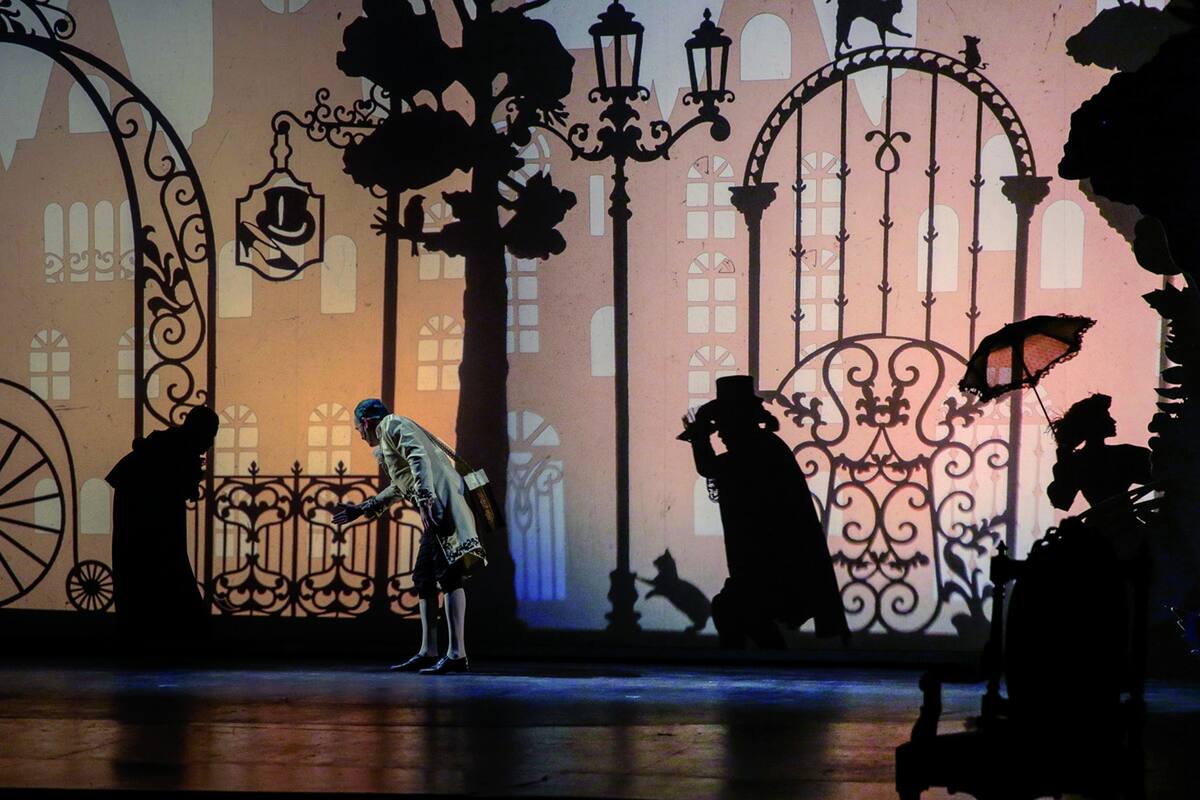 Un extenso inventario de siluetas y de formas cobra vitalidad a través de un juego en el que se multiplican fondos y sombras para retratar escenas enmarcadas mediante retroproyecciones animadas en actuaciones de música o de las artes escénicas.