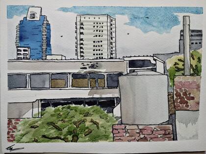 Crónicas urbanas. "Aprendí que la cuarentena redujo el ambiente en el que interactúo, así como los paisajes que me limito a ver día tras día. Esta es la vista más abierta que tengo desde mi ventana", cuenta Felipe Pallua Viciconte (15 años, CABA).