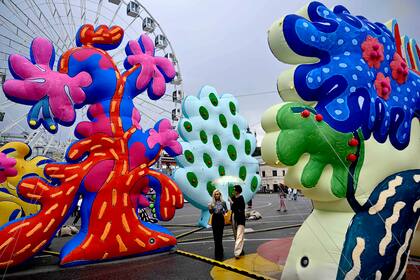 Se dice que María Prymachenko, artista polaca fallecida en 1997, recordaba así el origen de sus creaciones: “Una vez cerca de casa, junto al río, en una pradera llena de flores donde llevaba a pastar los gansos, dibujaba en la arena diferentes flores que había visto, y después vi arcilla azulada. La tomé y pinté nuestra casa”. El universo de Prymachenko se tiñó de infinitos colores, de figuras ligadas al folklore de su país, de una etiqueta –“naif”– quizás no del todo precisa. Por estos días, la dupla de artistas neoyorquinos Chiaozza (Adam Frezza and Terri Chiaode) coparon la Plaza de los Contratos de Kiev con una instalación de obras inflables inspiradas en el trabajo de Prymachenko. La textura es lúdica; las figuras, una suerte de declarada añoranza por la maravilla infantil. El gesto –la elección del lugar, la artista homenajeada, las tenazas de la guerra ahí nomás– dista de ser una alegre ocurrencia.