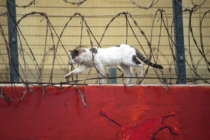 Hay quien dice que los gatos son de otro planeta, y cómo refutarlo. A ver quién evita el hechizo de su gracia, distancia, apego discreto, belleza. Hasta del más callejero o maltratado por la vida emerge ese aura. Tigres pequeños, salvajes solapados, portadores de la conciencia del felino: saberse regio y actuar en consecuencia. Por caso, ignorar un alambre de púas que a cualquier otro ser le hubiera impuesto reparos. El gato que aquí vemos avanza por entre el alambrado de la cárcel Colonia Sarita, en la ciudad de Callao, Perú, como si nada se interpusiera entre su cuerpo y el aire. Quizás no sean de otro planeta; tal vez –como señalan algunos de sus admiradores– su secreto es que poseen los atributos del agua. Cada tanto habría que imitarlos y afrontar el peso del mundo con atención y sin miedo. Ser felinos, ser agua: dúctiles, suaves, sagaces, certeros.