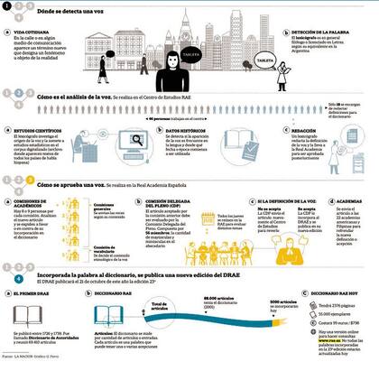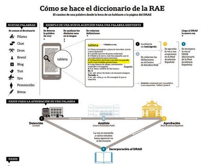 El camino que recorre una palabra desde la boca de un hablante hasta una página del diccionario es un trayecto plagado de análisis, discusiones, estudios científicos y estadísticos. El primer tramo comienza cuando una voz llama la atención de un lexicógrafo: en la calle, en un medio de comunicación, donde fuera, aparece un término nuevo que designa un fenómeno u objeto. Por ejemplo, hoy se incorporan los anglicismos chat y blog; siglas, como SMS, o sustantivos, como pilates.