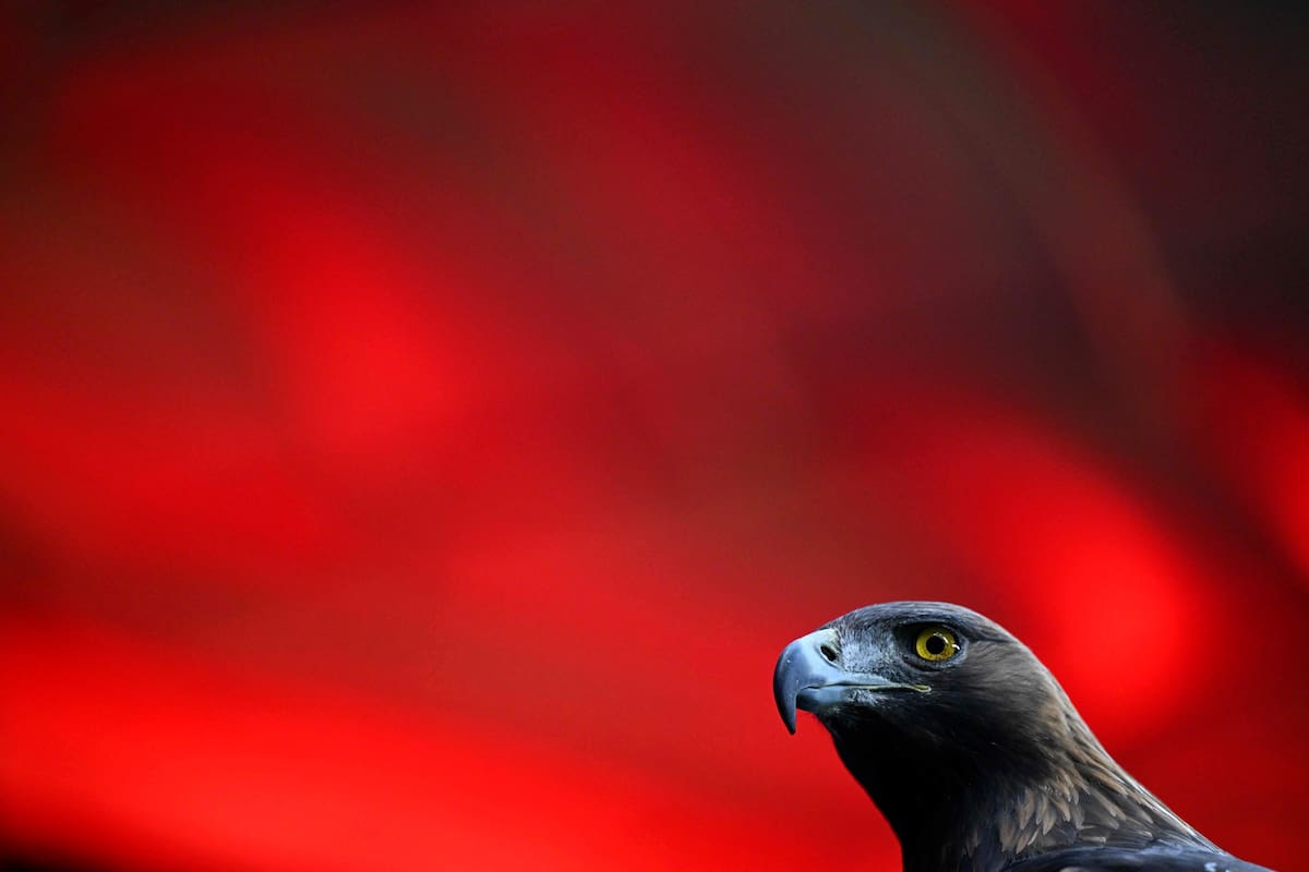 Son pocos los datos que acompañan esta foto. Se nos informa que el águila retratada se llama Atila y es la mascota oficial del Eintracht Frankfurt. El mismo día en que se registró la imagen, el equipo alemán se preparaba para un partido de la UEFA Champions League. No sabemos mucho más, sobre todo ignoramos si ese resplandor rojo que asoma detrás del ave corresponde a un atardecer notablemente intenso, a una bandera o a un inesperado efecto de iluminación. Lo cierto es que el resultado es poderoso, e independiente de algún que otro dato accesorio que se pueda averiguar. Por caso, que el águila tiene dueño: un tal Norbert Lawitschka, propietario de un criadero en Coburgo. Y que algún jugador del Frankfurt asegura que ciertos partidos no hubieran sido lo mismo sin la presencia, entre protectora e intimidante, del ave rapaz.
