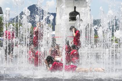 Hace calor en Seúl, y las altas temperaturas, incluso si ocurren en pleno verano, comenzaron a parecerse a una mala noticia. O, al menos, al atisbo de cierta amenaza. Pero quién les quita lo bailado a estos chicos recién salidos de clase, que se refrescan en una de las fuentes públicas de la ciudad. La foto, en sí misma, es bella: la gama de colores, la alegría capturada por la lente, el juego del agua, las formas de los cuerpos que asoman, se desdibujan, vuelven a asomar y a fundirse en la fiesta acuática. En algunos párrafos de Antártida negra (diario de su viaje al continente blanco), Adriana Lestido destaca la importancia de estar disponible ante lo que el mundo nos cuenta. Ante los instantes en que la vida se revela. Ella reflexionaba sobre esto en medio de hielos eternos y témpanos gigantes; quien tomó esta imagen en los primeros días de un verano tórrido debe haber pensado algo parecido.