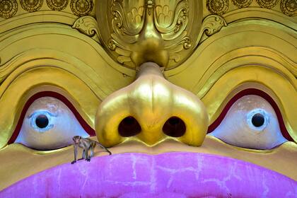 En la región central de Sri Lanka, en Dambulla, existe un sistema de cuevas que habría sido – vestigios óseos parecen atestiguarlo– refugio de seres humanos durante ese periodo tremendamente largo (y del que aún prácticamente nada conocemos) que fue la prehistoria. Mucho tiempo después, en esas mismas cavidades, personas inscriptas de este lado de la historia construyeron templos y honraron a unas cuantas deidades budistas. Esta foto se tomó en el ingreso al complejo; el encuadre privilegia al ¿intruso?: un pequeño mono, sin duda inmune a la fachada dorada sobre la que se desplaza y probablemente más que acostumbrado al flujo de turistas y creyentes que pasan por el lugar. Del otro lado, hundidas en la montaña, están las cuevas y su misterio. Quizás allí los intrusos seamos nosotros, llegados de un tiempo distinto, con otras ansias y otras oscuridades a cuestas.
