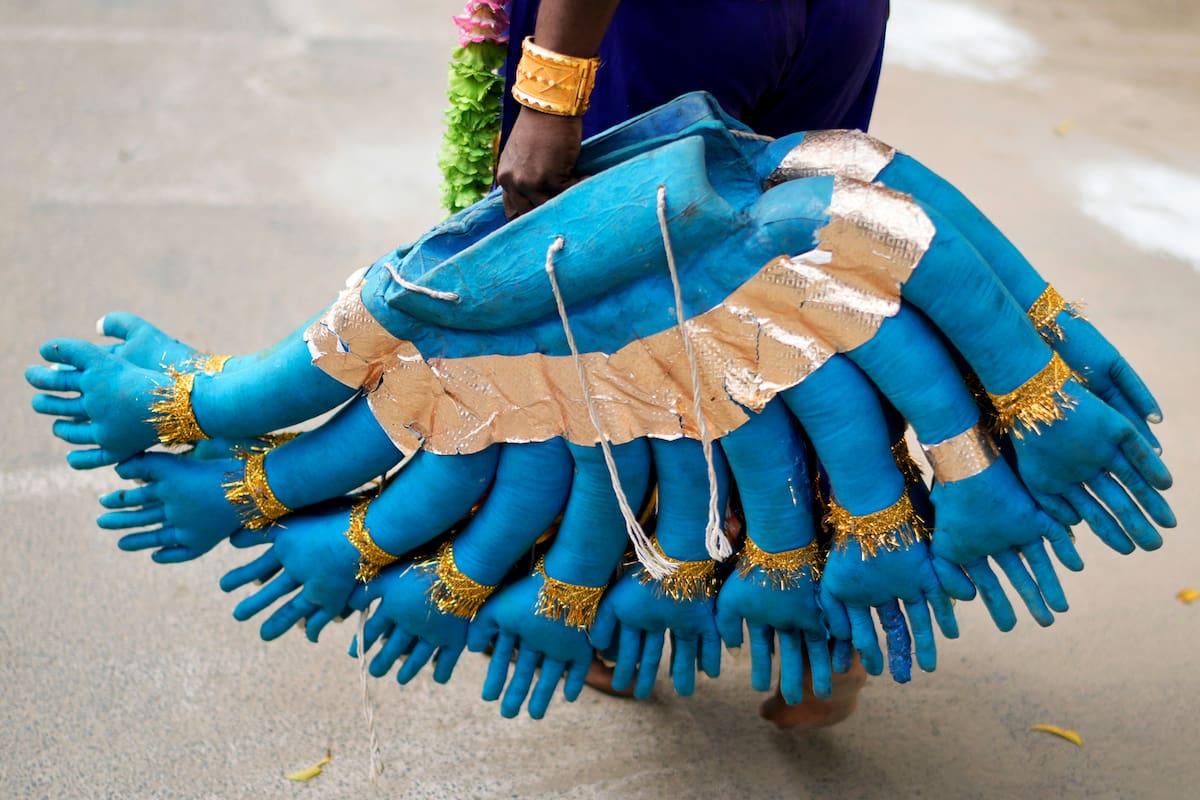 Ya son doce las ediciones del Veedhi Viruthu Vizha, un festival que se realiza en la ciudad india de Chennai, antiguamente conocida como Madrás. La fiesta se hace en homenaje a las tradicionales formas de arte popular en la región. En la foto, vemos algo así como un fugaz fuera de escena: antes de las presentaciones, un artista carga los accesorios que pronto serán parte de su actuación. Brazos (en este caso), rostros y cuerpos de antiguos dioses junto a instrumentos musicales, pasos de danza, vestimentas que rivalizan entre sí por el color y por los brillos: este año, la convocatoria llegó a unos 5000 artistas, algunos ya conocidos y otros que tuvieron su primera experiencia de contacto con el público. India es un país, pero podría pensárselo como continente: por extensión, diversidad, complejidad y una intensidad vital tan desbordante como, por lo general, poco conocida.