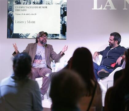 Con un formato de entrevista pública que saltó de la palabra al dibujo para regresar a la oralidad otra vez, los ilustradores Liniers y Montt se reunieron ayer con una platea joven y curiosa en el stand de LA NACION. ¿Cuál es el personaje más fácil de hacer? ¿Cómo se dieron cuenta de que querían ser dibujantes? Enseguida se rompió el hielo, y el par de cómplices contó sus historias y las de sus personajes, fibrón en mano. Debatieron sobre qué es ser un buen dibujante y los ejemplos de genialidades como Mafalda, Bart Simpson o Hello Kitty llevaron a una conclusión sobre el valor de lo simple y la belleza de la imperfección.