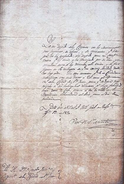 La breve, austera y rotunda carta inédita de San Martín que acaba de hacerse pública luego de 200 años es un reflejo fiel del general porque condensa a la vez su carácter y su pensamiento político. Así lo entendieron distintos historiadores e intelectuales consultados por LA NACION sobre el documento que el abogado porteño Luis Ponferrada, de 82 años, tiene en su poder y ahora donará al Archivo General de la Nación (AGN). Dirigida al Cabildo de San Juan el 19 de agosto de 1820, el día anterior a emprender la Expedición Libertadora del Perú, la carta contiene dos axiomas del pensamiento sanmartiniano: la necesidad de estrechar los "vínculos de unión" entre los ciudadanos y que "no existe sociedad donde no hay orden".