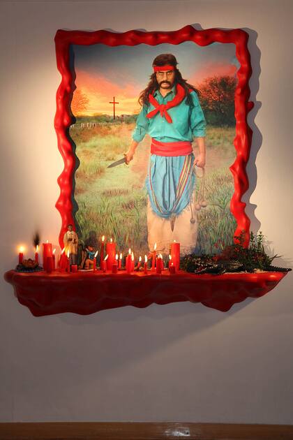Cuenta la leyenda que Antonio Mamerto Gil Núñez, un gaucho correntino nacido a mediados del siglo XIX, tuvo un romance con una viuda adinerada que también era cortejada por el comisario del pueblo. Reclutado por el Partido Autonomista (colorado) para pelear en la guerra civil contra el Partido Liberal, fue detenido por desertar el ejército y convertirse en un cuatrero que ayudaba a los pobres. Antes de ser degollado le advierte a su verdugo que su indulto llegará, y que deberá rezar en su nombre para salvar la vida de su hijo enfermo. Y así será. La devoción por el Gauchito Gil cruzó todo tipo de fronteras. La imagen de la tradicional estampita, reinterpretada por el editor Damián Ríos con cuchillo y boleadoras para la cámara de Marcos López en la serie Sub-realismo criollo (2008), llegó a exhibirse en el Museo Getty de Los Ángeles, enmarcada en un altar pagano. También fue apropiada por la cultura popular de múltiples formas que incluyen reproducciones en remeras, camiones y tatuajes.