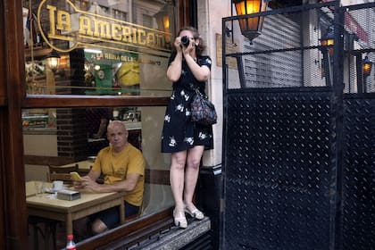 Muchas son las razones por las que una foto captura nuestra mirada; entre ellas, su densidad, la posibilidad de reunir, en una sola toma, múltiples capas de sentido. Así ocurre con esta imagen. Por el lugar donde fue tomada y por el vallado a la derecha, sabemos que la escena tuvo lugar un miércoles en las cercanías del Congreso. Nadie necesita más datos para estar al tanto, hoy, de lo que eso significa. Y entonces, el enigma. La mujer de vestido liviano, cartera, sandalias y cámara de fotos (el detalle: no es un celular), registra el momento encaramada sobre la fachada de La Americana. ¿Qué mira, qué captura con su lente? ¿Y qué piensa el hombre que toma un café del otro lado del vidrio? En la pintura barroca abundaban los espejos, superficies abiertas al misterio de lo múltiple. Aquí no hay espejos, pero sí lo inapresable de ciertos testimonios. Y una tensión vibrante como un cuchillo en el aire.