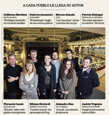 Guillermo Martínez, Sergio Olguín, Leonardo Oyola, Federico Jeanmaire, Gabriela Cabezón Cámara, Florencia Canale, Marcos Almada, Patricio Eleisegui, Alejandra Zina y Bibiana Ricciardi, impulsora del proyecto y autora del prólogo, eligieron lugares que tienen que ver, de una manera u otra, con sus respectivas vidas. Ya sea porque nacieron en alguna de esas localidades o porque allí crecieron, los escritores anclaron sus ficciones en personajes y leyendas locales.