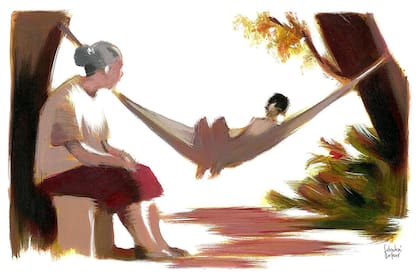 El chico tiene los ojos entrecerrados, esperando que el sueño los cierre del todo. Pero el sueño no llega. La noche está llena de rumores, roce de follajes cercanos, respiración de los perros que duermen a sus pies. Él se mueve apenas, lo suficiente como para mecer la hamaca en que está acostado, y ese movimiento no pasa inadvertido para su abuela. Hundida en un alto sillón de mimbre, la mujer tampoco puede dormir y habla: