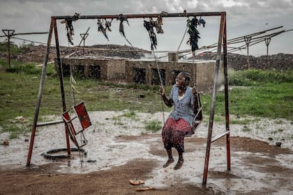 Qué importa la lluvia, si al tacto es fresca, chispeante, amable, mucho más amable que tantos humanos. Qué importa que una hamaca esté desvencijada, si a su lado hay otra que puede sostenerte. Y qué importan las interminables canalladas del mundo, si dentro tuyo anida una sonrisa capaz de derrotarlas. Mucho tiempo antes de que la refugiada congoleña retratada en esta foto naciera, un hombre llamado Albert Camus escribió, en el breve ensayo Retorno a Tiapasa: “En mitad del invierno aprendía por fin que había en mí un verano invencible”. Incluso sacada de contexto, la frase contiene –como el verano de su autor, como la risa de la refugiada– una luz imposible de opacar. La mujer congoleña ríe, y eso no omite el espanto de la crisis humanitaria que la obligó a dejar su hogar y recalar en un campo de refugiados al noroeste de Burundi. No lo omite, pero lo desafía.