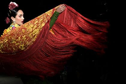 Hoy, en Sevilla, culmina la semana de la moda “We Love Flamenco”, evento que cumple trece años y cuyos objetos a homenajear son la estética, el clima, la textura y la tradición en torno al género musical más conocido del sur de España. La modelo que aquí vemos no necesita dar muestras de gracia en la danza, el cante o el toque; su misión es otra. Por lo pronto, exhibir el arte de los diseñadores Juan Foronda y Rafa Díaz. Prendas flamencas en tonos terrosos por parte de Díaz, mantones bordados, de factura artesanal e historia larga, por parte de Foronda. Más allá del trajín fashion, la imagen elegida tiene peso propio. El fondo en penumbras, los rojos intensos, el vuelo de la tela: como el mismo cante al que remite, aquí vibran el territorio de la sombra y el de la luz; sangre, brío y tragedia entremezclados, ya sea en la suavidad del hilo, ya sea en el sutil curso de la danza.