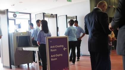 El azerbaiyano Faig Hasanov, vicepresidente de la federación de ajedrez local y árbitro Principal de la prueba le contó a LA NACION: “Evidentemente este ajedrecista primero se burló del control de ingreso al estadio (allí cada tarde decenas de jóvenes, empleados de una empresa de seguridad controlan con detectores de metales y scanners a cada uno de los participantes). Así logró sentarse y jugar su partida con su teléfono en un bolsillo, algo que está penado por la reglamentación. Y, agregó: “la Organización cuenta con 192 árbitros para toda la olimpíada, y además de un grupo más reducido, para que de manera aleatoria disponga controles sobre cualquiera de los jugadores en cualquier momento de la sesión de juego. Ahí fue cuando el jugador fue descubierto caminado por un sector de la sala con su teléfono”.