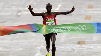 RÍO DE JANEIRO (EFE).- El keniano Eliud Kipchoge, gran dominador del maratón en el último decenio, se consagró campeón olímpico en Río 2016 bajo la lluvia con una demostración de fuerza en los diez últimos kilómetros que acabó, uno por uno, con sus principales adversarios hasta llegar victorioso al Sambódromo en 2h08:44.