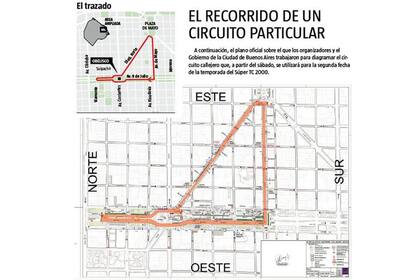 A continuación, el plano oficial sobre el que los organizadores y el Gobierno de la Ciudad de Buenos Aires trabajaron para diagramar el circuito callejero que, a partir del sábado, se utilizará para la segunda fecha de la temporada del Súper TC 2000.