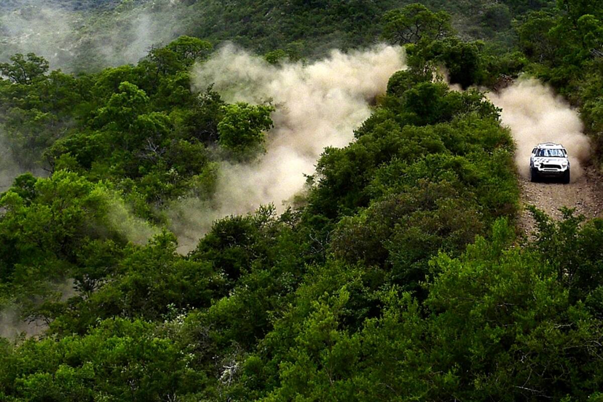Piedra del Molino, Salta. Punto más elevado de la Cuesta del Obispo: 3300 metros de altura. Motos y cuatriciclos, parte de la caravana, se detienen ante una alcantarilla. "Dakar=corrupción", "En Parques, Dakar es ilegal", rezan un par de banderas instaladas a ambos lados del camino. Es el ingreso en el Parque Nacional los Cardones y los guardaparques impiden momentáneamente el tránsito. Cuando se reúnen suficientes máquinas, camionetas de la administración de Parques ponen en marcha al frente de la caravana, que a no más de 50 km/h y sin abandonar jamás la ruta, recorren los 26 kilómetros que la prueba impone sobre terreno protegido. Por una vez, burros y guanacos resultan más potentes que los caballos de fuerza.