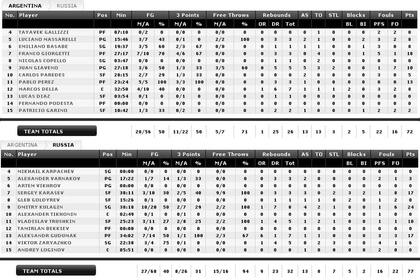 El partido se jugó en el Polideportivo de la ciudad letona de Riga y los parciales fueron estos: Argentina 19-19, 40-35, 53-50 y 72-77.