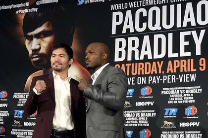 Emmanuel Dapidran Pacquiao, tal el nombre completo del PacMan, de 37 años, tiene un récord de 65 combates, con 57 triunfos (38 KO), seis derrotas (3 KO) y dos empates. Bradley posee un registro de 35 combates, con 33 triunfos (13 KO), con un empate y una derrota.