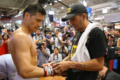 Martínez cerró su preparación anteayer con un entrenamiento abierto e intenso, en el que probó a fondo sus piernas, en un trabajo de manoplas junto a su entrenador Pablo Sarmiento. Dentro de un clima festivo y optimista, al terminar su tarea expresó: "¡Señores, tranquilos, la rodilla responde a pleno!"